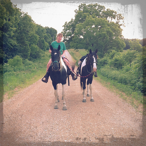 Then on the way home, I (bravely) decided to leave my bike at my Mom’s friends house and ride one of her horses back with her. It sounded like a good idea until I got on the horse and remembered why I didn’t ride horses. The fear set in – of heights, of letting a huge animal ultimately be in control. But, I faced my fear. I left my bike behind and my comfort zone.